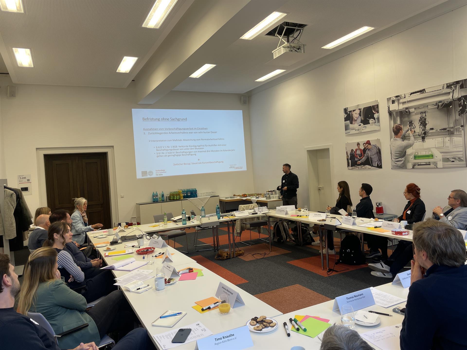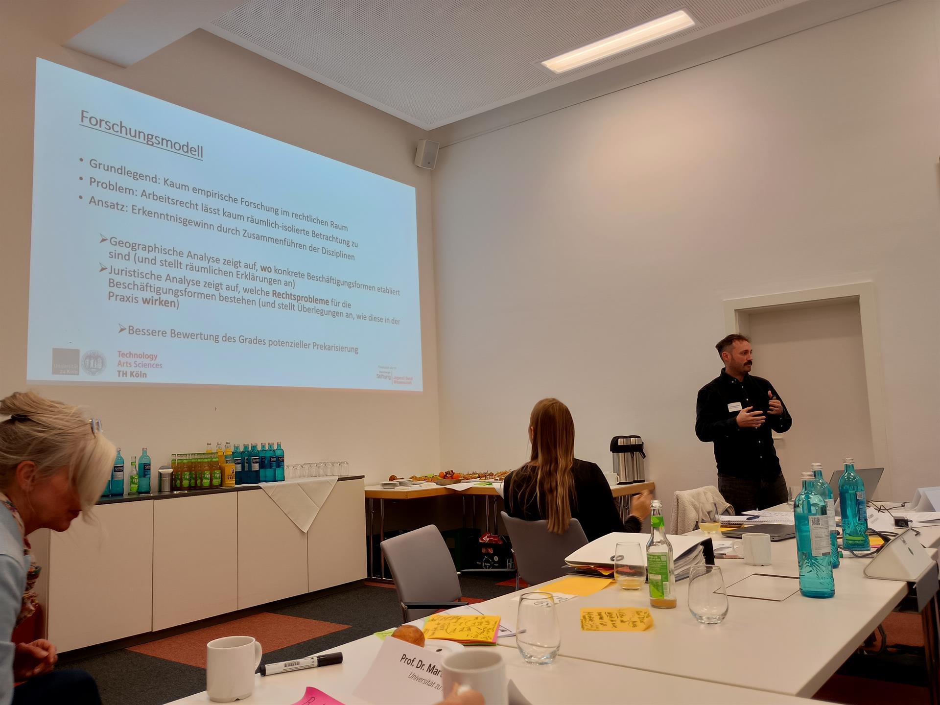 Am 16. Oktober 2025 trafen sich an der Technischen Hochschule Köln Forschende und Expert*innen, um die Ergebnisse des Projekts zu diskutieren. Unter der Leitung von Prof. Dr. Ricarda Rolf und Ivo Costantini (beide TH Köln) in Kooperation mit Prof. Dr. Martina Fuchs, Peter Dannenberg und Michelle Zander von der Universität zu Köln wurden spannende Einblicke in die Entwicklungen des Kölner Einzel- und Hybridhandels gegeben. Dabei ging es unter anderem um neue Arbeitsstandorte, flexible Vertragsmodelle, Erfahrungen mit prekären Jobs und die rechtliche Einordnung verdichteter Beschäftigungsformen.