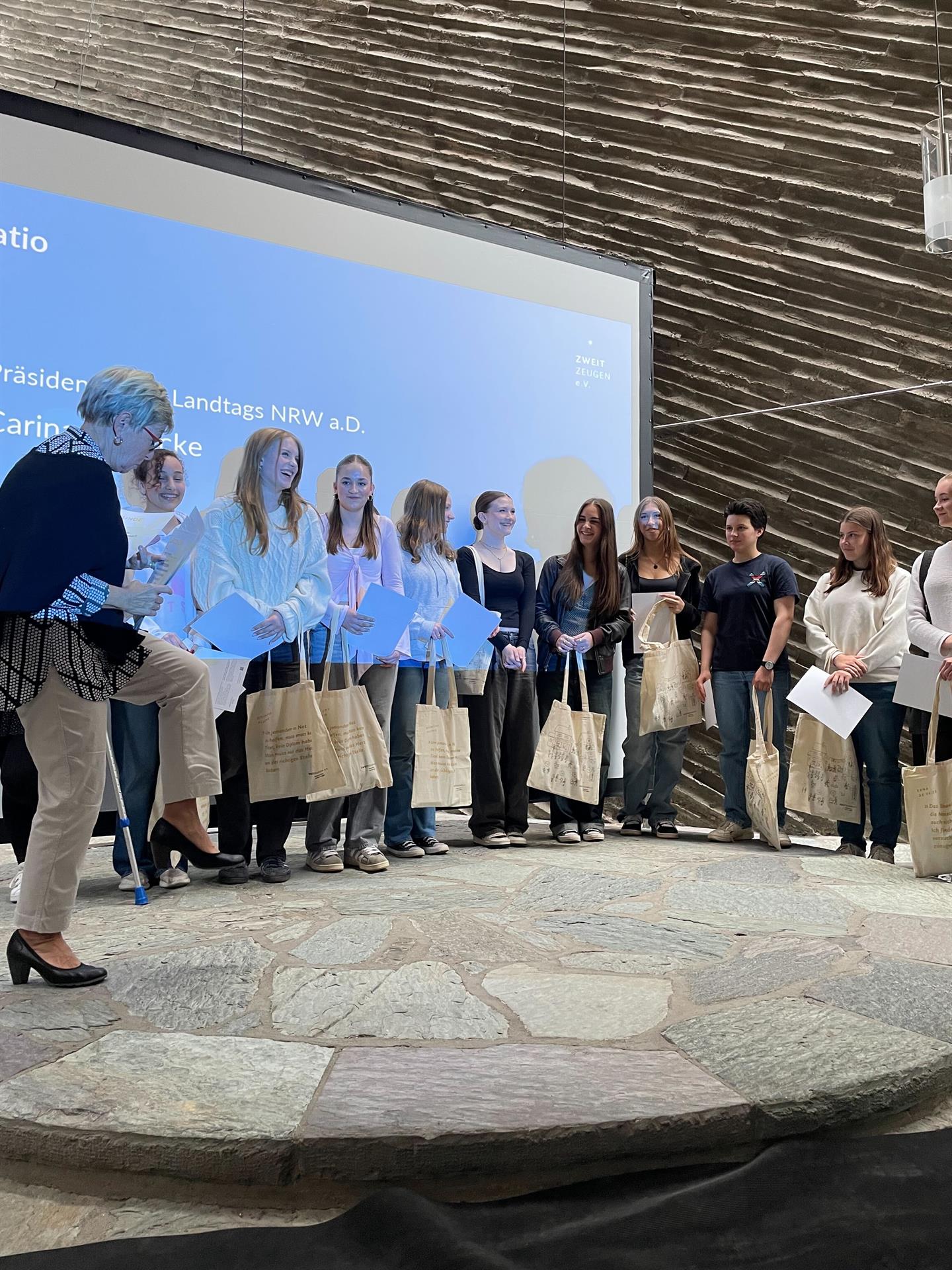 Besonders spannend für alle Teilnehmer und Teilnehmerinnen der Veranstaltung war, dass bei der Preisverleihung auch die Zeitzeugen Tamar Dreifuss und Dr. Leon Weintraub anwesend waren und über ihre Erfahrungen sprachen.